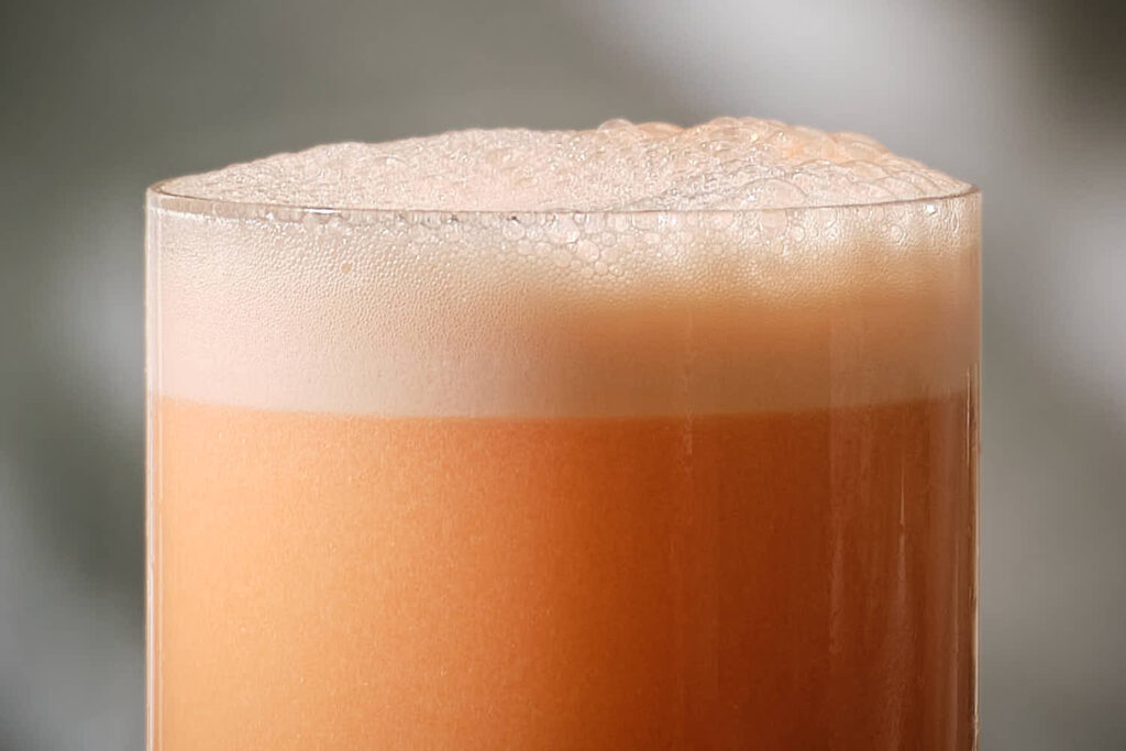 Dopo aver versato il drink nel bicchiere, noterai che le bollicine d’aria, incorporate con la tecnica, rimarranno per un periodo di tempo all’interno della bevanda e poco a poco affioreranno in superficie creando un effetto visivo interessante e una piacevole texture spumosa. Le bollicine più fini, tuttavia, resteranno più a lungo all’interno del drink.